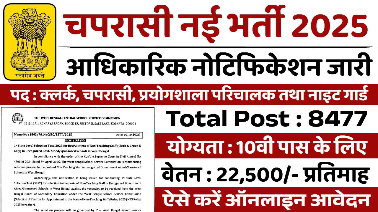 Peon Vacancy 2025 Apply : चपरासी भर्ती का नया नोटिफिकेशन जारी