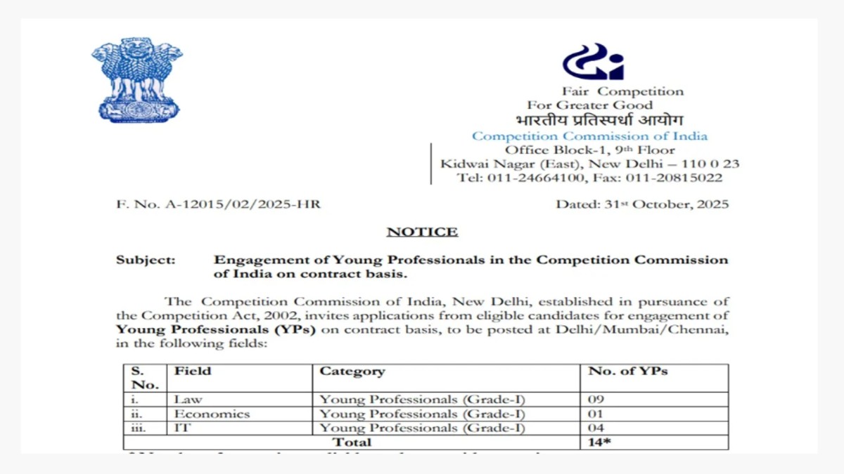 CCI vacancy 2025 Apply : यंग प्रोफेशनल के पदों पर रजिस्ट्रेशन शुरू, सेलेक्टेड युवाओं को 60 हजार तक मिलेगी सैलरी