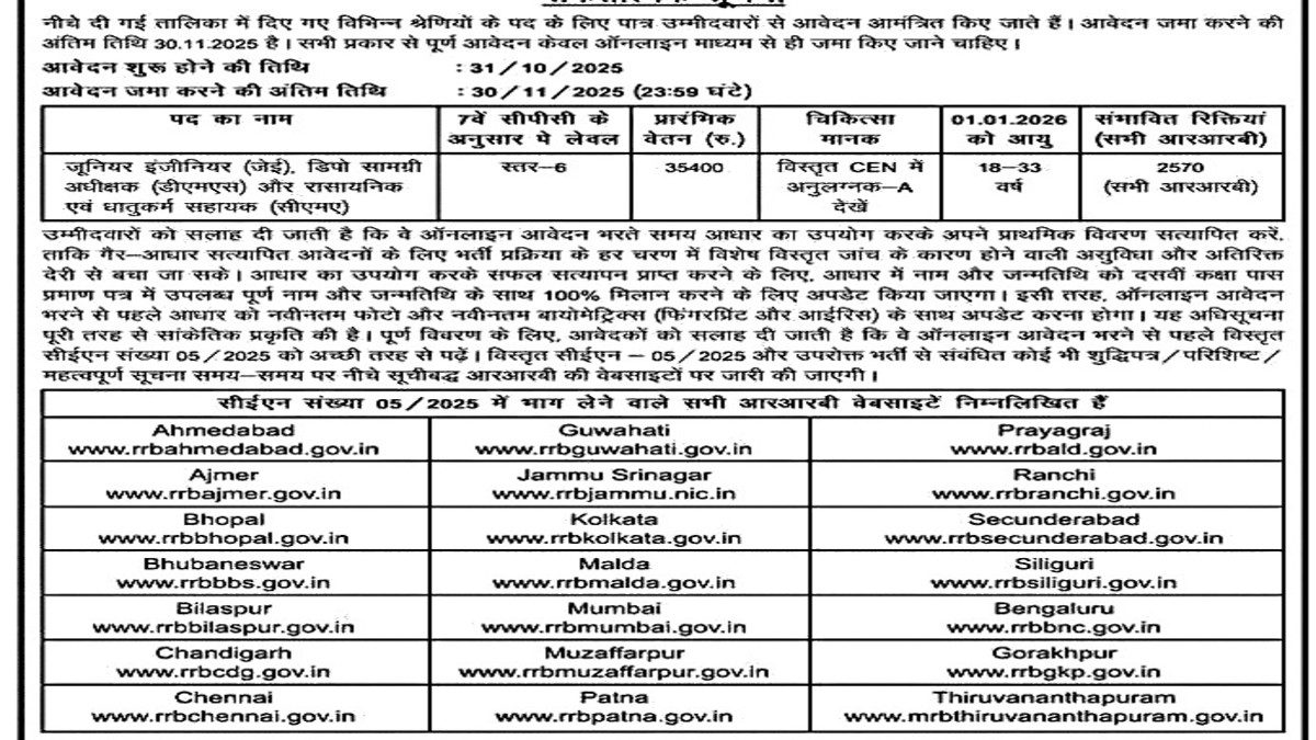 Railway Bharti रेलवे में 10,000 से ज्यादा विभिन्न पदों पर निकली है भर्तियां, एज लिमिट 33 वर्ष, अच्छी सैलरी, जानें योग्यता और अन्य डिटेल्स