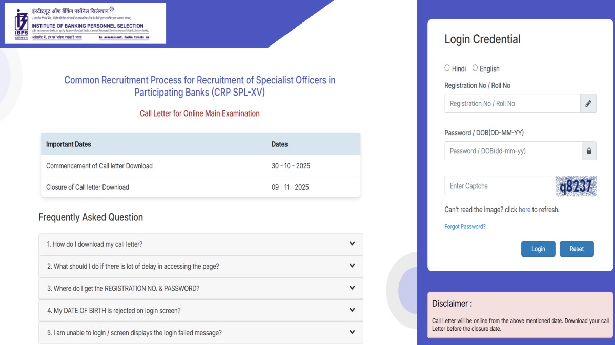 IBPS SO Mains Admit Card 2025 Date : आईबीपीएस स्पेशलिस्ट ऑफिसर मेंस एडमिट कार्ड 2025 ibps.in पर जारी, Direct Link