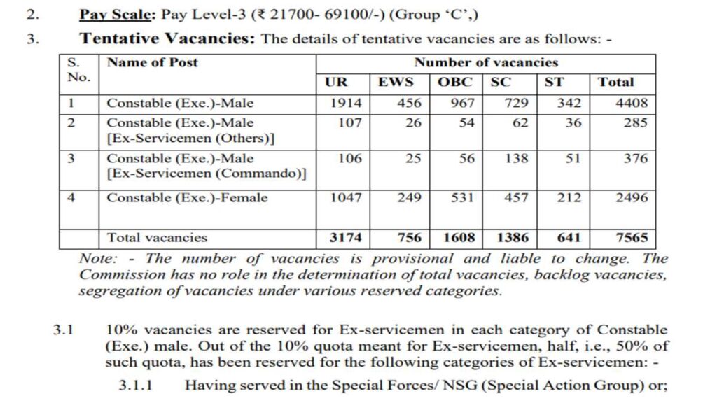 आधिकारिक नोटिस में लिखा है, “दिल्ली पुलिस परीक्षा, 2025 में कांस्टेबल (कार्यकारी) पुरुष और महिला के लिए नोटिस, उम्मीदवारों को 22-09-2025 से 21-10-2025 (23:00 बजे) की अवधि के दौरान ऑनलाइन आवेदन पत्र भरने के लिए आमंत्रित करता है। , 22.09.2025 को आयोग की वेबसाइट पर प्रकाशित किया गया था। अब ऑनलाइन आवेदन पत्र भरने की अंतिम तिथि को 31.10.2025 (23:00 बजे तक) तक बढ़ाने का निर्णय लिया गया है। इसके अलावा, कोई बदलाव नहीं किया गया है।” दिल्ली पुलिस कांस्टेबल रिक्ति विवरण