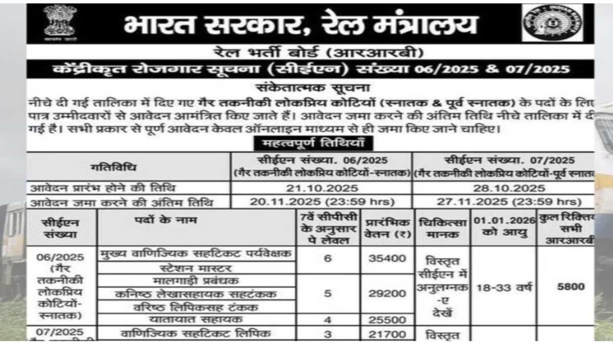 RRB NTPC Vacancy Apply : 12वीं पास के लिए रेलवे में TC समेत एनटीपीसी के 3050 पदों पर भर्ती, छूट छिनी, वैकेंसी कम